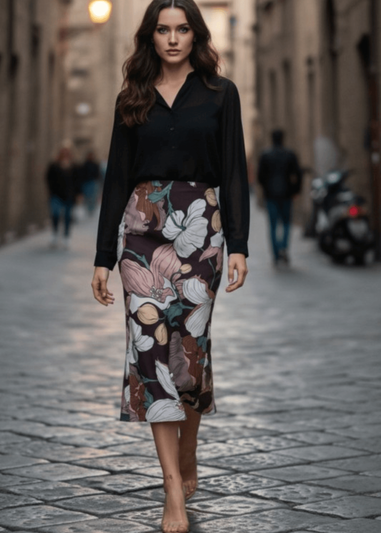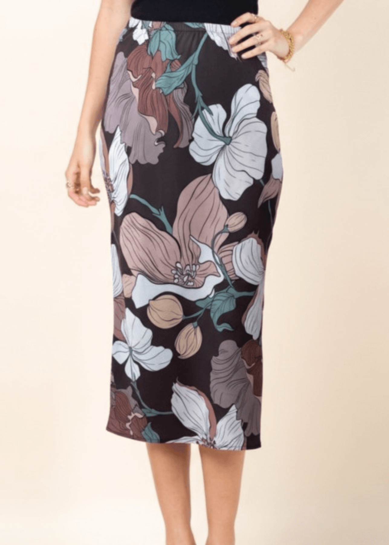 Effortless elegance meets everyday comfort in the Felicia Big Floral Print Midi Skirt. This lightweight piece features a stunning flower print that transitions seamlessly from casual to dressed-up occasions. The split side adds movement and modern flair, while the elastic waistband and stretchy fabric blend ensure all-day comfort and ease of wear. Crafted from a breathable 95% polyester and 5% spandex blend, this skirt drapes beautifully and moves with you. Perfect for spring and summer styling.