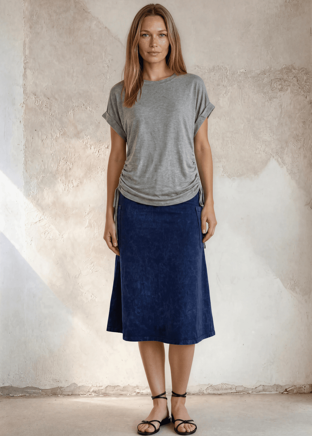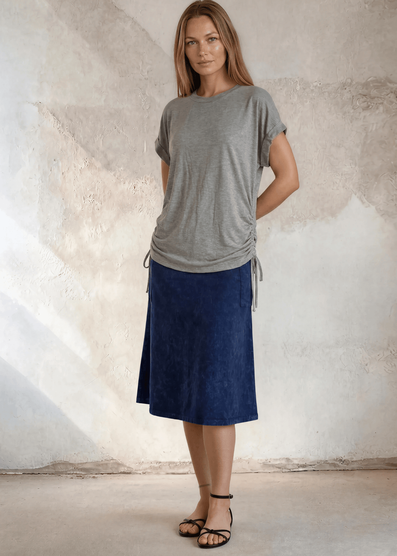 Some tops just work — and the Rhonda Ruched Side Shirt is one of them. Crafted from a buttery-soft rayon-spandex blend, this effortless heather gray top features a wide round neckline and an adjustable side tie drawstring that cinches just right, giving you a flattering, ruched silhouette without any fuss. Lightweight, stretchy, and incredibly comfortable, it moves with you from morning to evening without missing a beat.