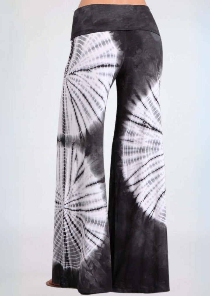 USA Made Women's Charcoal Grey & White Casual Tie Dye Palazzo Pants |  Soft & comfortable design with a wide fold over waistband | Classy Cozy Cool Made in America Boutique