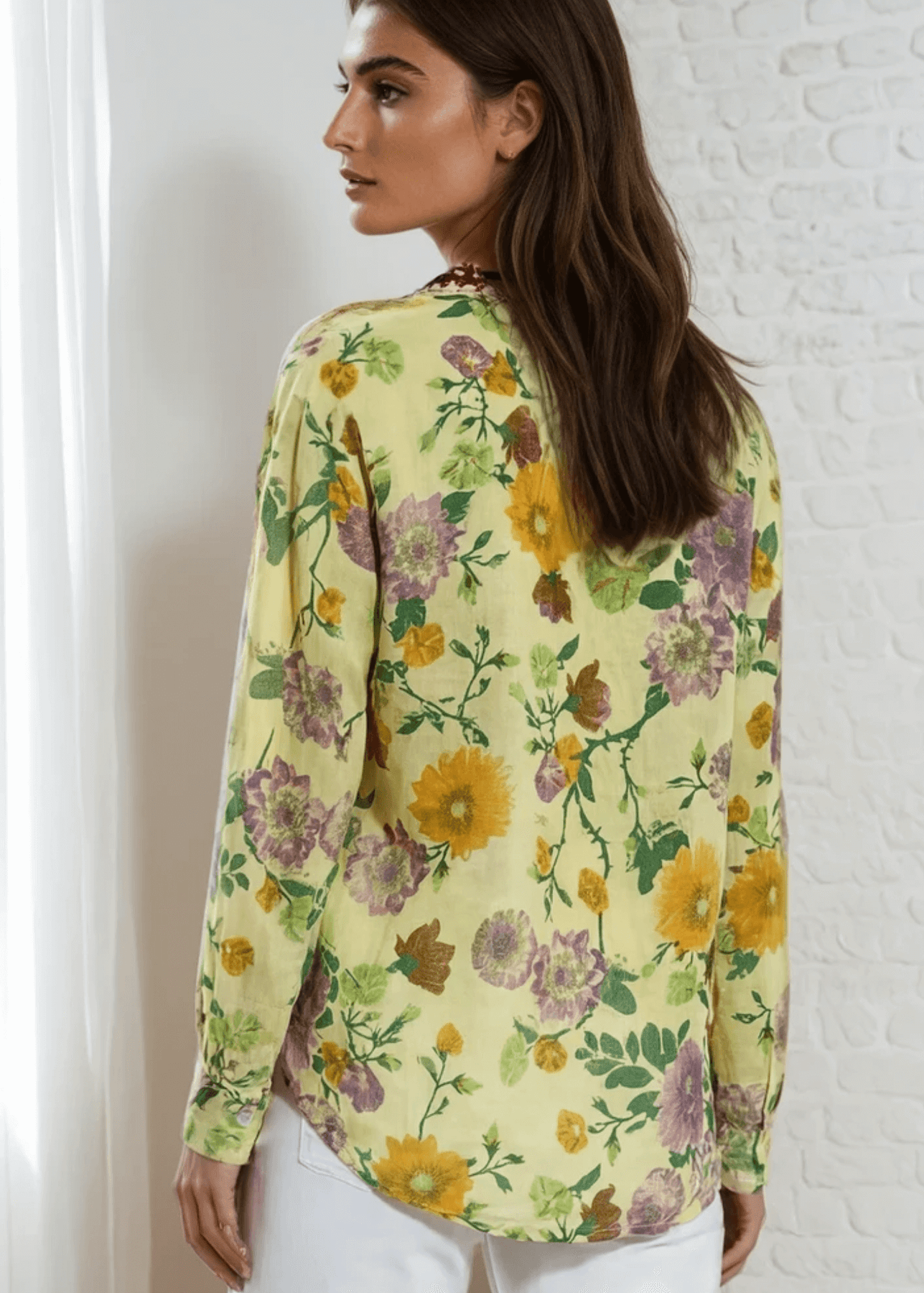 Bask in the beauty of effortless bohemian charm with the Carla Top. Crafted from soft, breathable cotton voile, this piece features a vibrant floral print in sun-kissed tones of golden marigold, lilac, and fresh green. The hand-embroidered deep red bib adds an artisanal touch, making each blouse unique. Designed with a relaxed silhouette and a flattering V-neckline, it's perfect for warm days or layered looks. Made in Los Angeles and finished with a light garment-dye wash for a soft, lived-in feel.