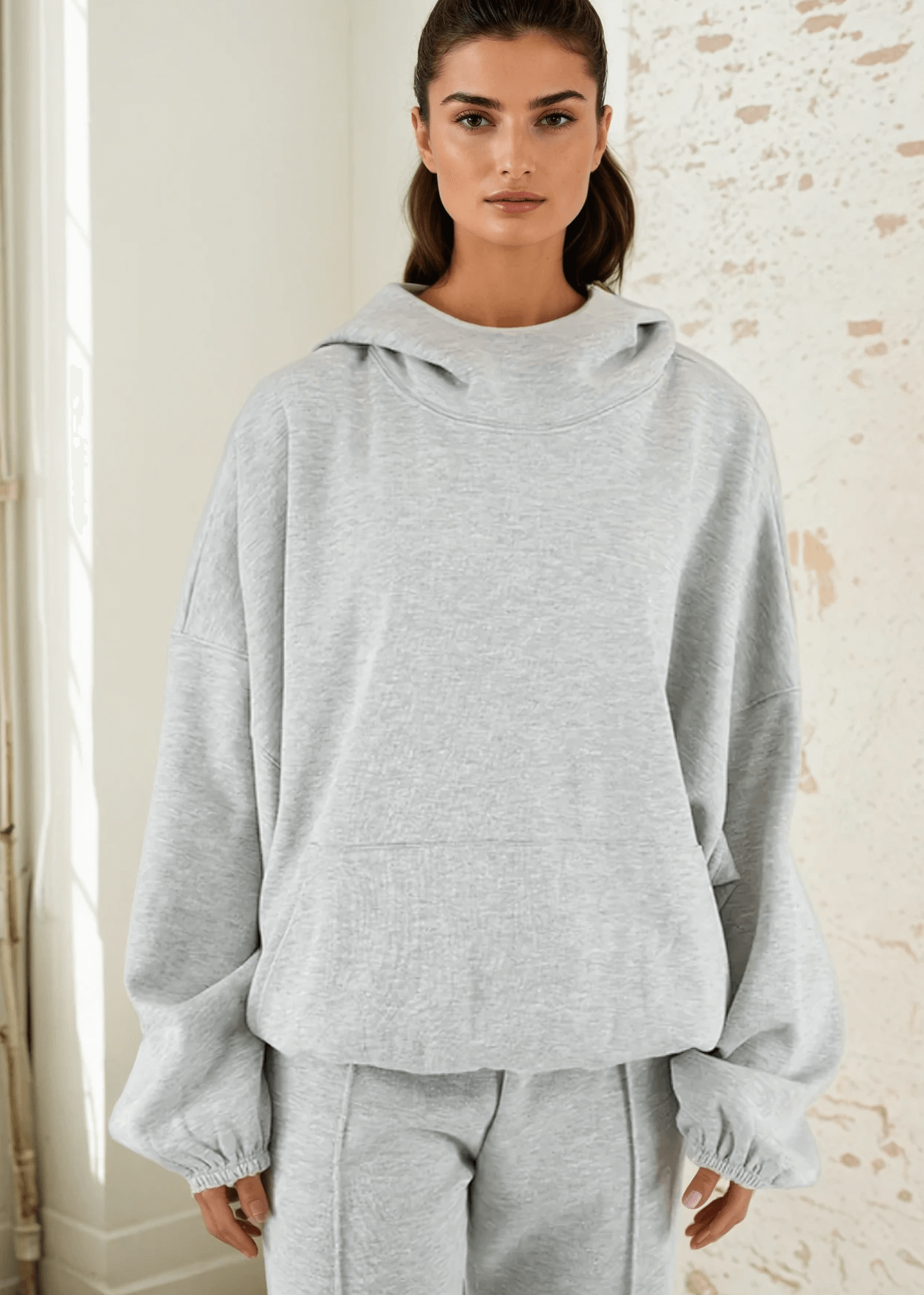 Stay cozy and stylish in our Juliana Puffy High Neck Fleece Hoodie. Made of premium heavy sweatshirt hoodie with a comfortable cotton blend fleece material, it features a high neck to keep you warm, puffy bubble sleeves with gathered elastic at the wrist, and a gathered elastic hem for a secure fit. The oversized kangaroo pocket adds functionality and the puffy fit provides a trendy modern look.