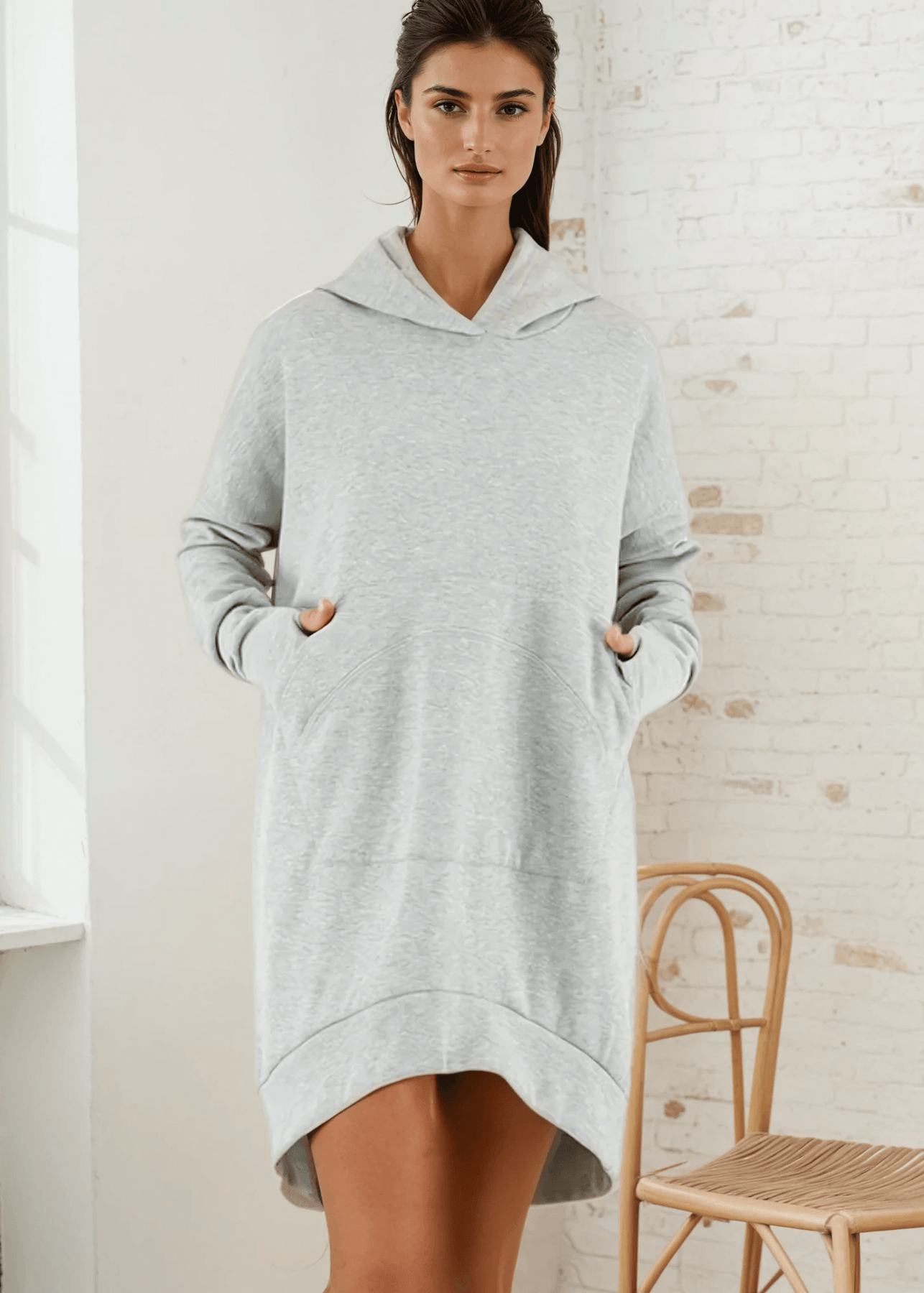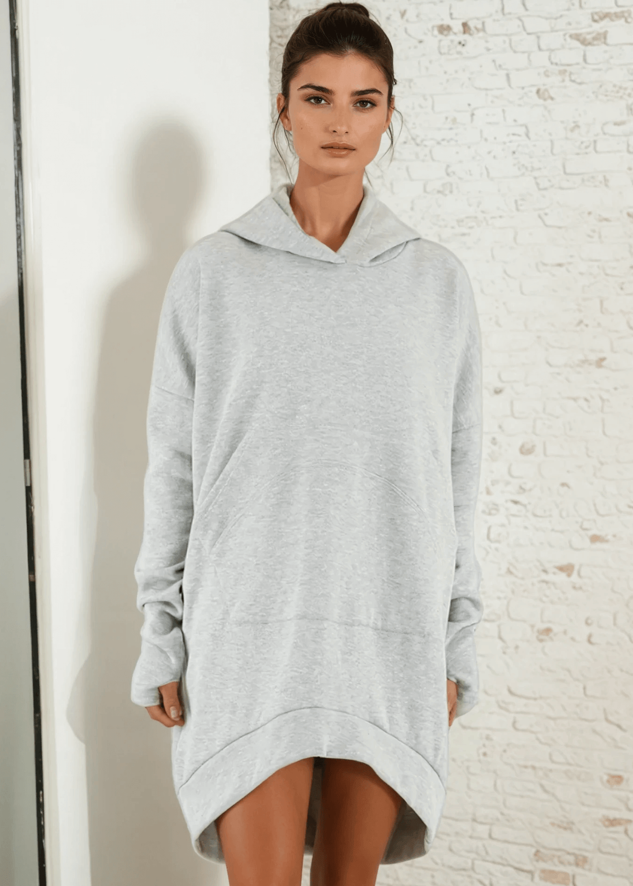 Expertly crafted for superior comfort and style, the Camilla Cozy Fleece Tunic Length Hoodie is the perfect addition to your wardrobe. Made from a premium heavy cotton blend fleece material, this hoodie boasts an oversized fit, long tunic length, and detailed pocket shape to ensure that nothing falls out. Stay warm with thumbholes and an oversized kangaroo pocket. Available in Heather Grey.
