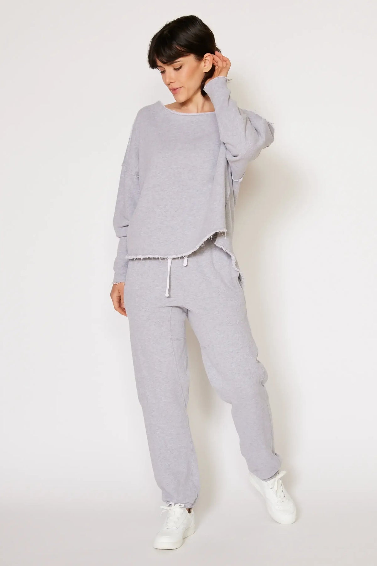 People of Leisure - Cruz Sweatpants - In a versatile heather gray, these comfort fit pants are the trusty sidekick for your daily grind or your lazy Sundays – ethically sourced, locally made, and upcycled with heart right in LA's vibrant core.